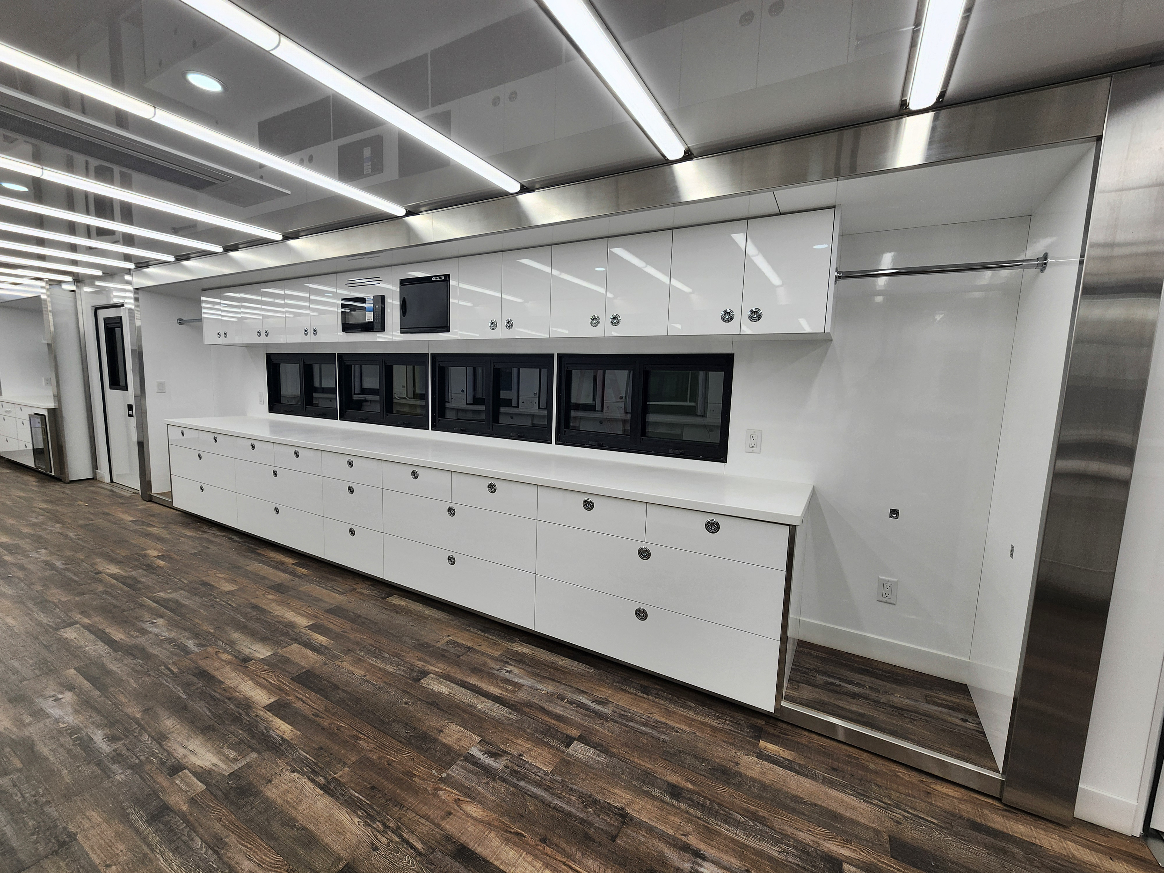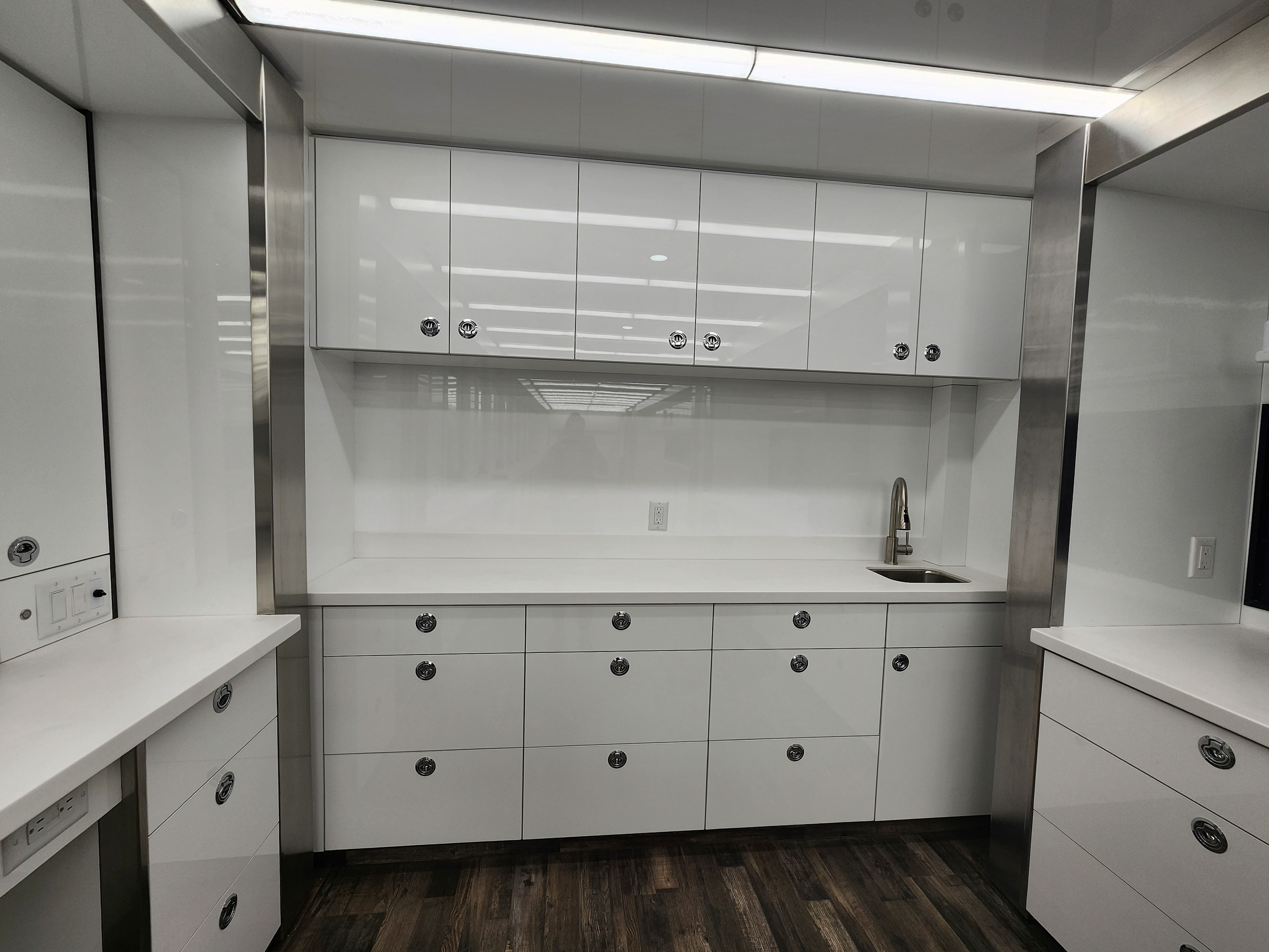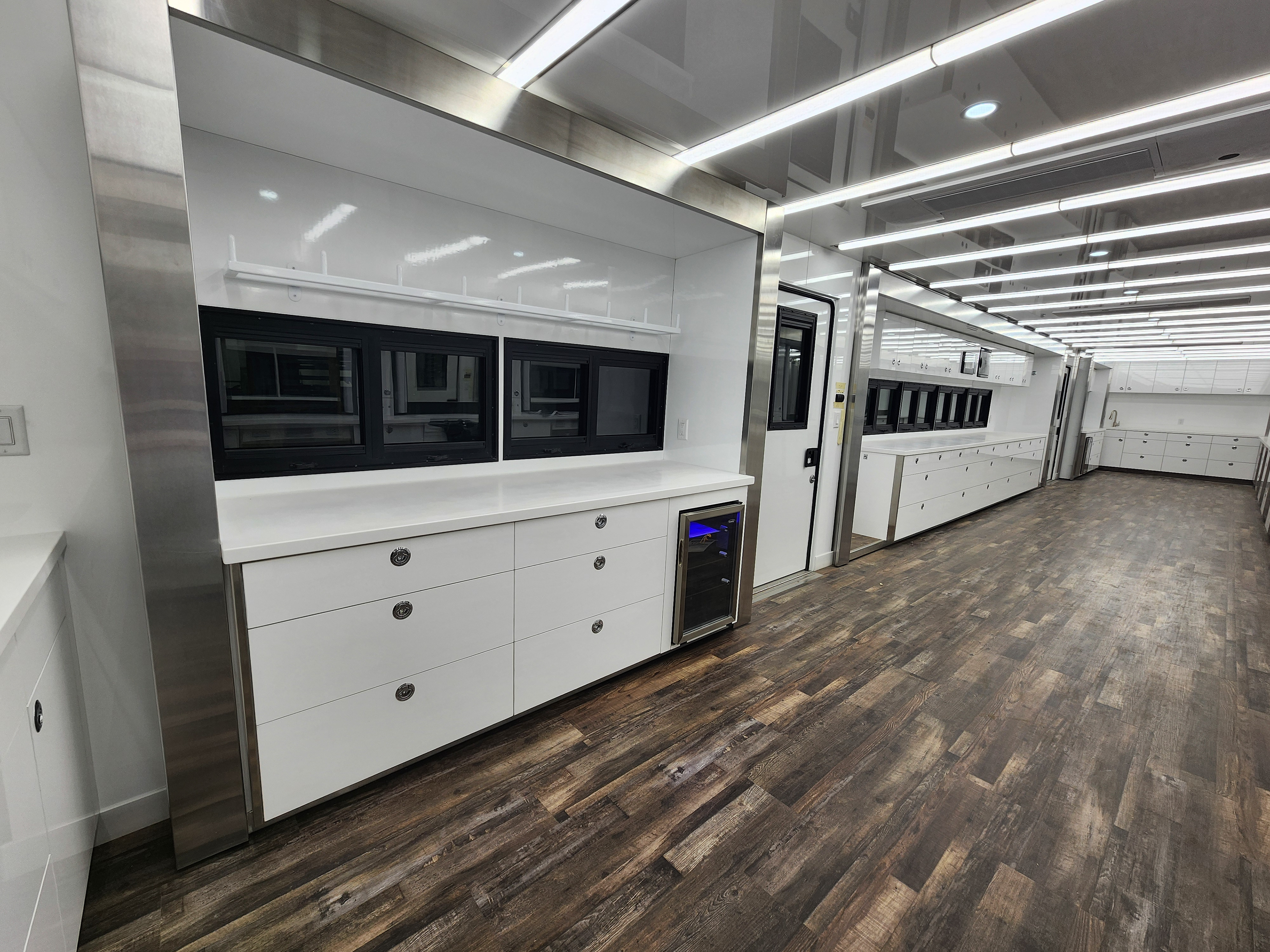 This 53' Hair & Makeup trailer offers 2 feet more interior space than any other comparable unit, delivering unmatched room and functionality on set. Designed with slide-outs for maximum efficiency, it provides an open, comfortable environment ideal for busy production days.